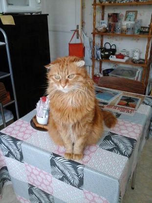 Caramel est un magnifique chat roux de 12 ans, longs poils, yeux verts, qui nous a été confié après le décès de sa maîtresse.