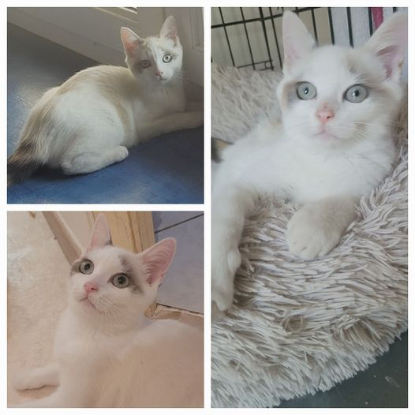 Whitie est une petite femelle tricolore de 3 mois et demi.