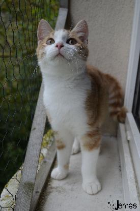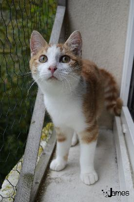 JAMES a été récupéré dans un jardin d'un particulier avec ses frères (EDWARD, ROBIN et SWANN) et sœur (VICTORIA) qui ont eu la chance de trouver leur famille.