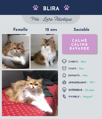 Bonjour ! Je m'appelle Blira et j'ai 12 ans. On m'appelle la flamboyante parce que j'ai le pelage couleur de feu et aussi un caractère enflammé !