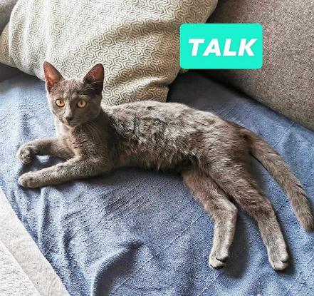 Talk porte bien son nom. C'est un chaton bavard qui aime être au plus près de son maître. Câlins et Ronrons garantis !