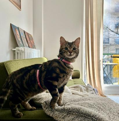 C'est un petit chat dynamique qui a besoin de présence et de stimulation pour ne pas s'ennuyer : jeux, balles, canes à pêche...