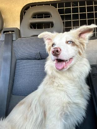 Je suis encore un bébé et j'ai donc tout à apprendre. Pour l'instant je fais quelques petites bêtises, de chiot, c'est normal. Je suis sage dans la maison et je suis presque propre ! Je m'entends très bien avec les autres chiens et il en faudra obligatoirement un dans ma future famille pour que je puisse évoluer en me calquant sur lui. J'ai déjà le comportement d'un bon border mais du fait de ma surdité je ne pourrais pas travailler. Il me faudra toutefois des activités, j'en aurais besoin ! Je suis très joueuse donc il ne faudra pas me laisser enfermée toute la journée, ça ne marchera pas avec moi ?