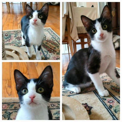 Vanille est une femelle noire et blanche de 3 mois.