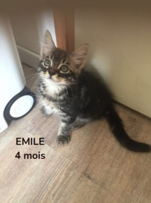 Emile est un petit mâle de 4 mois. Très gentil, il se montre à peine timide au départ, puis affectueux et proche de l'humain. Il adore jouer (notamment avec ses frères)