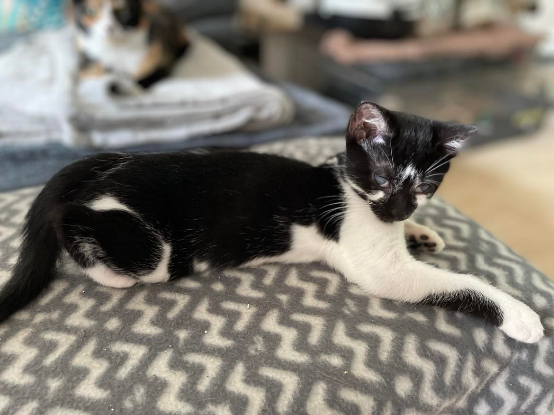 Le petit OTAQUIN est un adorable chaton noir et blanche. Il est doux, ronronne facilement et aime faire la sieste. Il adore aussi jouer. Il aime autant les adultes que les enfants.