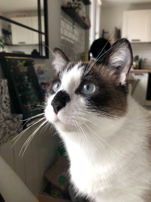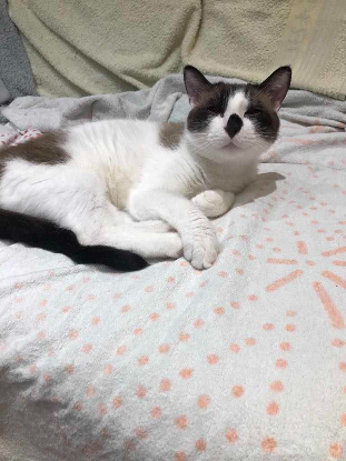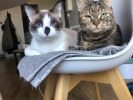 Après plusieurs semaines planquées, Yo montre enfin le bout de son nez ! Il s'avère être un chat plein de tendresses, en demande de câlins et qui apprécie la présence de ses humains. Sa colocataire Santa a beaucoup contribué dans sa reprise de confiance en lui et en l'humain. Un foyer avec un autre chat sociable est donc à privilégier.