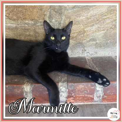 MARMITE est un petit chat timide qui a été récupéré avec la mâchoire cassée.