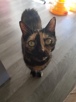 MANI, femelle écailles de tortue *********************************************** Date de naissance : 01/01/2019 (estimé) ID : 250268743125137 Test FIV et FELV négatif ************************************************ Mãni est une petite minette de nature très discrète, qui a besoin d'endroits douillets pour ses dodos quotidiens. Elle est aussi gourmande et vous le fera savoir lorsque c'est l'heure du sachet fraîcheur par ses petits miaulements et ses caresses contre vos jambes si vous n'allez pas assez vite...Il faudra cependant la freiner, Mademoiselle en raffole. Mãni vous suivra partout, de pièces en pièces et se posera près de vous, sur son coussin. Elle vous parlera également avec sa petite voix timide. C'est une minette très sensible à la voix, il faudra être très doux.ce et patient.e. Une fois que vous lui aurez ouvert votre coeur, sa confiance s'installera et un amour grandira. A chaque retour chez vous, elle vous accueillera, dès votre arrivée, avec ses petits miaulements de chaton. Elle accepte la présence d'un congénère, mais il est vrai que ce n'est pas sa tasse de thé. Une adoption sans congénères serait idéale. Elle n'est pas très joueuse mais acceptera volontier quelques moments de complicité avec un bout de ficelle, un doudou parfumé à l'herbe à chat, voir même une balle en mousse. Elle aura également son petit moment de sprint de 3 minutes. Mani à besoin d'espace, d'un extérieur, d'arbres car le bois est sa matière préféré pour s'étirer et faire ses griffes. ***************************************************** Conditions de placement : Adoption dans le 44 et Nord 85 uniquement. Placement UNIQUEMENT en maison avec jardin ou appartement en rez-de-chaussée avec jardin.