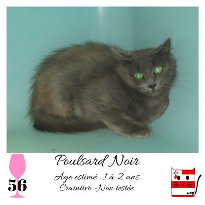 URGENCE EUTHANASIE ! Poulsard Noir est une femelle de 1-2 ans craintive (un comportement normal en fourrière) qui vous attend dans une fourrière du 56. ATTENTION SORTIE AU PLUS TARD LE 3/07/2020 (avant euthanasie) ! Pour adopter, c'est facile : ➡️ On se rend sur la page facebook d'Urgence Fourrière de Bretagne (UFB) -> https://www.facebook.com/sosfourrieresbreizh/ ➡️ On vient en message privé sur la page UFB ➡️ On remplit le questionnaire ➡️ Si le questionnaire est validé, on se rend disponible pour la pré-visite ➡️ On se rend aussi disponible pour venir chercher le loulou en fourrière Les chats sortent de fourrière primo-vaccinés et identifiés. Restera à charge de l’adoptant le rappel de vaccin et la stérilisation qui est OBLIGATOIRE. Les femelles en fourrière ayant été trouvées dans la rue, il y a fort à parier que nombre d'entre elles en âge de l'être soient gestantes ... ---- A PROPOS D'URGENCE FOURRIERE DE BRETAGNE (UFB) Nous sommes un COLLECTIF d'ASSOCIATIONS DE PROTECTION ANIMALE (qui rassemble notamment Moustaches et Compagnie, Bêtes de Scène, les Pachas, Chats Libres de Berné, etc, etc....) Le BUT de ce collectif d'associations est donc de SORTIR ces animaux des fourrières surchargées en les faisant ADOPTER de manière LEGALE par des familles ou en leur trouvant des FAMILLES D'ACCUEIL lorsque des places en association se libèrent.