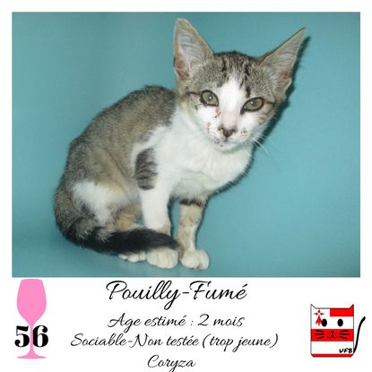 URGENCE EUTHANASIE ! Pouilly-Fumé est une femelle de 2 mois sociable qui vous attend dans une fourrière du 56. ATTENTION SORTIE AU PLUS TARD LE 3/07/2020 (avant euthanasie) ! Pour adopter, c'est facile : ➡️ On se rend sur la page facebook d'Urgence Fourrière de Bretagne (UFB) -> https://www.facebook.com/sosfourrieresbreizh/ ➡️ On vient en message privé sur la page UFB ➡️ On remplit le questionnaire ➡️ Si le questionnaire est validé, on se rend disponible pour la pré-visite ➡️ On se rend aussi disponible pour venir chercher le loulou en fourrière Les chats sortent de fourrière primo-vaccinés et identifiés. Restera à charge de l’adoptant le rappel de vaccin et la stérilisation qui est OBLIGATOIRE. Les femelles en fourrière ayant été trouvées dans la rue, il y a fort à parier que nombre d'entre elles en âge de l'être soient gestantes ... ---- A PROPOS D'URGENCE FOURRIERE DE BRETAGNE (UFB) Nous sommes un COLLECTIF d'ASSOCIATIONS DE PROTECTION ANIMALE (qui rassemble notamment Moustaches et Compagnie, Bêtes de Scène, les Pachas, Chats Libres de Berné, etc, etc....) Le BUT de ce collectif d'associations est donc de SORTIR ces animaux des fourrières surchargées en les faisant ADOPTER de manière LEGALE par des familles ou en leur trouvant des FAMILLES D'ACCUEIL lorsque des places en association se libèrent.