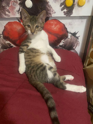 Comportement : ZOOM est le frère de zélie, il est arrivé fin juin avec la teigne, après 5 semaines de traitement, c'est finit, zoom est très câlin et très sociable.