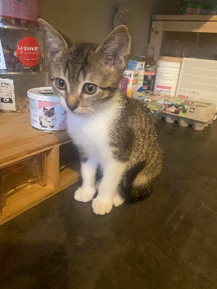 Comportement : Zélie est arrivée à la maison avec son frère zoom fin juin, ils avaient la teigne, le traitement est fini, c'est une petite minette assez calme,sociable.