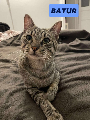 BATUR est un chat de 3 ans très affectueux et pas peureux du tout, il n’hésitera pas à venir vous demander des caresses pour briser la glace. Petit rigolo, il adore se faire caresser le ventre, il se roule sur lui-même pour avoir la meilleure gratouille possible.