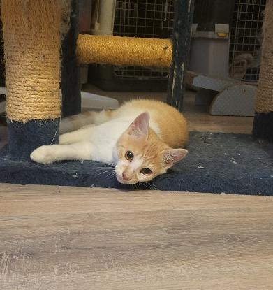 ZOLA est un beau chaton roux et blanc né début mai 2024.