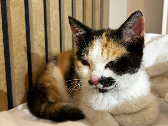 Calicot est une boule de poiles très gourmande?. Timide au début ?‍?️mais après 2/3caresses, elle ne vous lâche plus et devient très câline?. Elle adores les coussins pour faire une longue sieste?. Un amour de chatonne?.