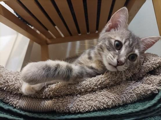 Notre petite Queenie, une croustinette de 3 mois environ, magnifique, adorable, ronronneuse, et cascadeuse.