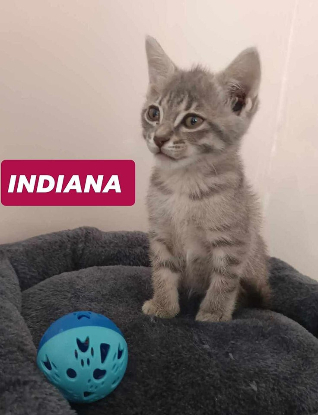 Indiana est la plus intrépide de la portée. Bien qu'elle soit un peu plus petite que ses sœurs, elle compense par une grande curiosité. Indiana est encore très attachée à sa maman et préfère téter, mais lorsqu'elle mange, elle prend son repas très au sérieux ! Ce petit détail amusant montre à quel point elle est déterminée et pleine de caractère. Avec son pelage tigré fin, Indiana est parfaite pour une famille qui aime les chats avec de la personnalité et un petit côté espiègle.