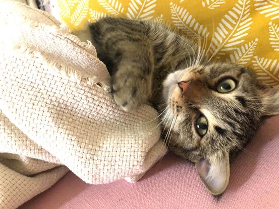 Pirouette ne connait pas les autres animaux et les enfants. Elle pourrait tout à fait vivre avec d'autres chats si les présentations sont faites correctement et/ou avec de grands enfants respectueux.