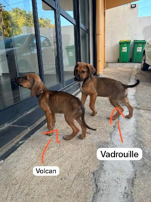 Leur histoire : A l'âge de deux mois Volcan et Vadrouille ont été retrouvé seuls dans un champ de cannes . Contrairement à leur frère, ils ont été sauvé à temps et grâce à une belle solidarité.  Ils ont pu trouver de jolies familles d'accueil pour s'occuper d'eux successivement et leur permettre de reprendre des forces avant de trouver leurs familles pour la vie. Depuis peu, Vadrouille a trouvé sa famille pour la vie.