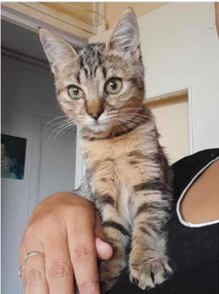 Vous cherchez le chaton parfait ? Ne cherchez plus la voilà ! Crispies est une chatonne exceptionnelle. Elle s'entend avec tout le monde : humains de tous âges et tous les animaux (chiens, chats, perroquet, rat, etc ....). Crispies est très douce et calme. Elle a une petite déformation de la patte avant qui ne la dérange pas du tout et se voit à peine. Elle est due à des carences alimentaires de son début de vie à la rue. Venez vite rencontrer ce chaton tout doux.