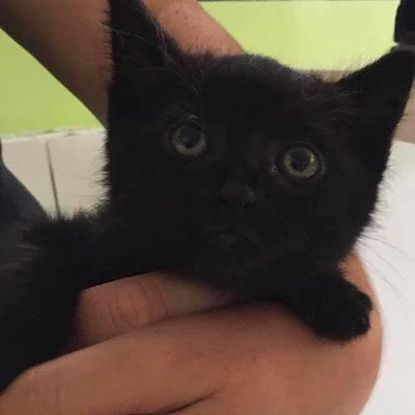 Filou, Petit chaton tout noir de 5 semaines. Filou est encore très craintif mais d’ici un mois, ça devrait aller beaucoup. En famille d’accueil chez Blandine à St Paul les Fonts joignable au 06.61.87.56.13 Adoption sous l’association Instinct félin, une participation aux frais vétérinaire à partir de 80€ sera demandée à la réservation.