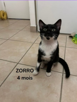 Zorro est un jeune chaton de 4 mois. Il est très affectueux , joueur et propre. Il se laisse porter volontiers.