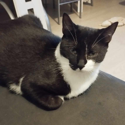 L'animal est identifié, vacciné (primo + rappel contre le virus de la panleucopénie féline, l'herpès virus félin, le calicivirus félin et le virus de la leucémie féline), déparasité interne/externe (vers et puces), stérilisé et testé négatif FIV/FELV.