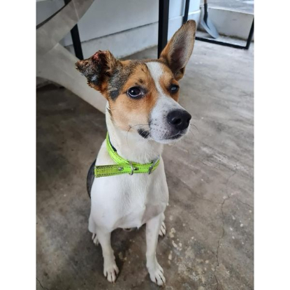 Voici notre courageux VITO, très gentil chien de 1 an et demi (pour 16 kgs), qui est devenu aveugle à cause de la folie des hommes