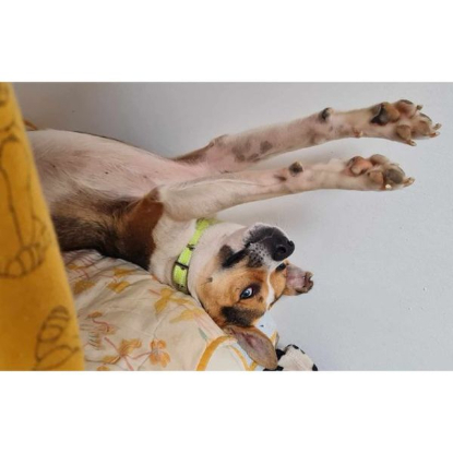 Trois mois se sont écoulés depuis son accident. Il s’est très bien adapté et est devenu très câlin et joueur. Vito reste néanmoins un jeune chien assez dynamique qui doit s’occuper. Ce n’est pas parce qu’il est aveugle qu’il va rester posé dans un coin. Il a besoin d’interactions et d’occupations, comme n’importe quel chien