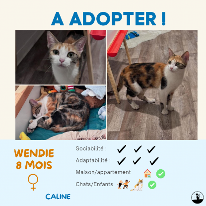 Pour Wendie nous cherchons une famille vivant en appartement ou maison. Wendie est compatible avec les enfants. Et elle pourra également vivre avec ses congénères chats. Enfin, Wendie est autonome en journée, mais réclamera beaucoup d’attention !