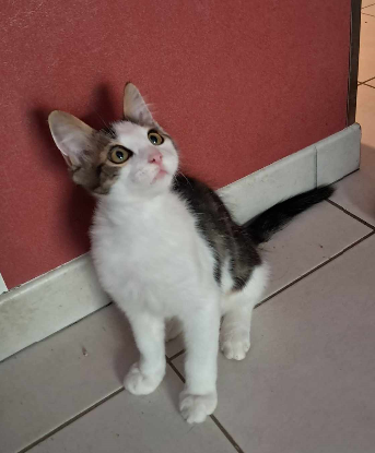 Motus est une petit chaton de 2 mois. Il est très joueur, curieux, sociable. Il adore les câlins, et est très bavard surtout si vous ne lui faites pas de câlins. C'est également une véritable machine à ronrons