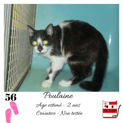 URGENCE EUTHANASIE ! Poulaine est une femelle de 2 ans craintive (un comportement normal en fourrière) qui vous attend dans une fourrière du 56. ATTENTION SORTIE AU PLUS TARD LE 10/07/2020 (avant euthanasie) ! Pour adopter, c'est facile : ➡️ On se rend sur la page facebook d'Urgence Fourrière de Bretagne (UFB) -> https://www.facebook.com/sosfourrieresbreizh/ ➡️ On vient en message privé sur la page UFB ➡️ On remplit le questionnaire ➡️ Si le questionnaire est validé, on se rend disponible pour la pré-visite ➡️ On se rend aussi disponible pour venir chercher le loulou en fourrière Les chats sortent de fourrière primo-vaccinés et identifiés. Restera à charge de l’adoptant le rappel de vaccin et la stérilisation qui est OBLIGATOIRE. Les femelles en fourrière ayant été trouvées dans la rue, il y a fort à parier que nombre d'entre elles en âge de l'être soient gestantes ... ---- A PROPOS D'URGENCE FOURRIERE DE BRETAGNE (UFB) Nous sommes un COLLECTIF d'ASSOCIATIONS DE PROTECTION ANIMALE (qui rassemble notamment Moustaches et Compagnie, Bêtes de Scène, les Pachas, Chats Libres de Berné, etc, etc....) Le BUT de ce collectif d'associations est donc de SORTIR ces animaux des fourrières surchargées en les faisant ADOPTER de manière LEGALE par des familles ou en leur trouvant des FAMILLES D'ACCUEIL lorsque des places en association se libèrent.