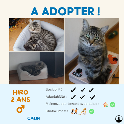 Pour Hiro nous cherchons une famille en maison ou avec balcon sécurisé. En effet, Hiro aime bien prendre des bains de soleil et respirer l’air frais du dehors. Hiro adorera vivre avec des enfants, mais aussi avec ses congénères chats. Enfin, Hiro est autonome en journée, mais vous réclamera quand même beaucoup d’attention pour des câlins !
