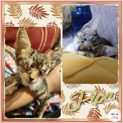 PIPA a été trouvée par une famille qui a payé tous les frais vétérinaires pour essayer de sauver ses yeux.