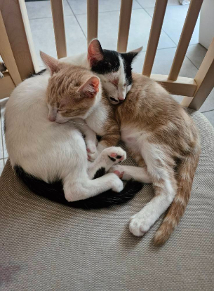 Myu et Gourmand, deux adorables chatons nés le 23 juin, attendent impatiemment de trouver leur foyer pour la vie !