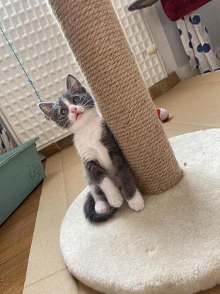 REBELLE, CHATON FEMELLE GRISE ET BLANCHE DE TYPE EUROPEEN, NEE LE 10 MAI 2020