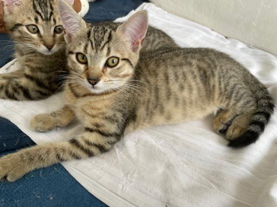 Typée bengal, elle a un magnifique pelage. Il lui faudra un peu de temps pour s'acclimater, sa famille devra continuer le travail de socialisation fait par sa famille d'accueil.