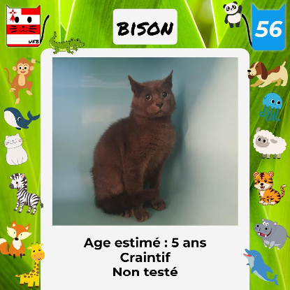 Bison, mâle de 5 ans craintif (un comportement normal en fourrière) qui vous attend dans une fourrière du 56. ATTENTION SORTIE AU PLUS TARD LE 04/10/2024 (avant euthanasie) !