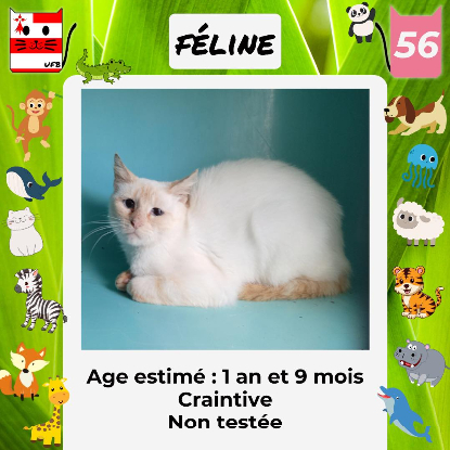 Féline, femelle de 2 ans craintive (un comportement normal en fourrière) qui vous attend dans une fourrière du 56. ATTENTION SORTIE AU PLUS TARD LE 04/10/2024 (avant euthanasie) !