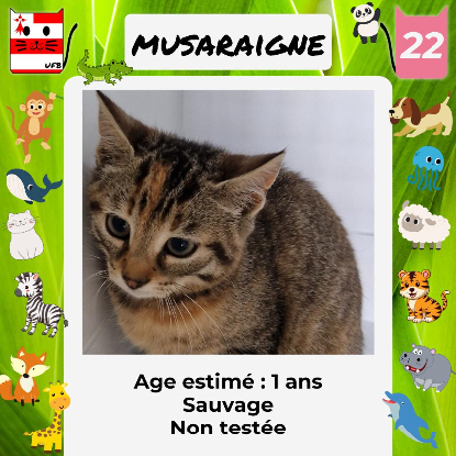 Musaraigne, femelle de 1 an sauvageonne (un comportement normal en fourrière) qui vous attend dans une fourrière du 22. ATTENTION SORTIE AU PLUS TARD LE 04/10/2024 (avant euthanasie) !