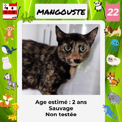 Mangouste, femelle de 2 ans sauvageonne (un comportement normal en fourrière) qui vous attend dans une fourrière du 22. ATTENTION SORTIE AU PLUS TARD LE 04/10/2024 (avant euthanasie) !