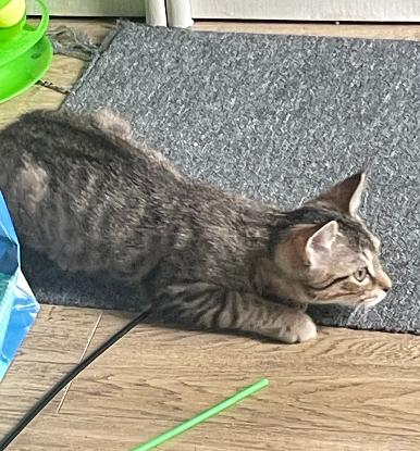 Il s’entend très bien avec les autres chatons de la fratrie et leur fait également des câlins et la toilette.