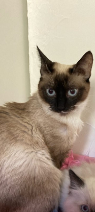 Lady est un chat Femelle , de type Européen croisé siamois, couleur Chocolate point, stérilisée, vaccinée, identifiée, vermifugée, testée négative aux maladies félines FIV, FELV.