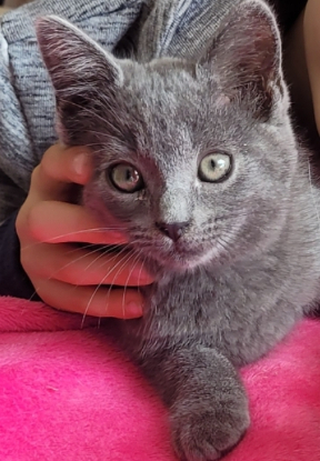 Vroum est un chaton de 2 mois, très curieux de tout, joueur et sociable. Il aime les câlins et ronronne facilement. Il est OK chats, chiens et enfants.