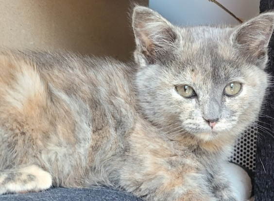 Vadrouille est la sœur de Vroum. Elle a 2 mois. Elle est joueuse et câline. Elle est OK chats, chiens et enfants
