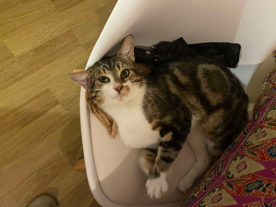 Je n’ai pas eu peur des chiens que j’ai pu croiser, et suis ok avec les enfants, ne sortant pas une griffe même en jouant.