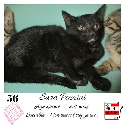 URGENCE EUTHANASIE ! Sara Pezzini est une femelle de 3-4 mois sociable qui vous attend dans une fourrière du 56. ATTENTION SORTIE AU PLUS TARD LE 17/07/2020 (avant euthanasie) ! Pour adopter, c'est facile : ➡️ On se rend sur la page facebook d'Urgence Fourrière de Bretagne (UFB) -> https://www.facebook.com/sosfourrieresbreizh/ ➡️ On vient en message privé sur la page UFB ➡️ On remplit le questionnaire ➡️ Si le questionnaire est validé, on se rend disponible pour la pré-visite ➡️ On se rend aussi disponible pour venir chercher le loulou en fourrière Les chats sortent de fourrière primo-vaccinés et identifiés. Restera à charge de l’adoptant le rappel de vaccin et la stérilisation qui est OBLIGATOIRE. Les femelles en fourrière ayant été trouvées dans la rue, il y a fort à parier que nombre d'entre elles en âge de l'être soient gestantes ... ---- A PROPOS D'URGENCE FOURRIERE DE BRETAGNE (UFB) Nous sommes un COLLECTIF d'ASSOCIATIONS DE PROTECTION ANIMALE (qui rassemble notamment Moustaches et Compagnie, Bêtes de Scène, les Pachas, Chats Libres de Berné, etc, etc....) Le BUT de ce collectif d'associations est donc de SORTIR ces animaux des fourrières surchargées en les faisant ADOPTER de manière LEGALE par des familles ou en leur trouvant des FAMILLES D'ACCUEIL lorsque des places en association se libèrent.