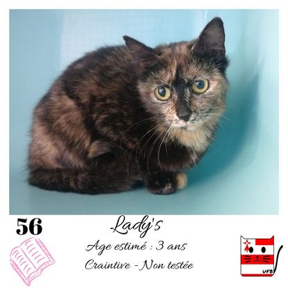 URGENCE EUTHANASIE ! Lady's est une femelle de 3 ans craintive (un comportement normal en fourrière) qui vous attend dans une fourrière du 56. ATTENTION SORTIE AU PLUS TARD LE 17/07/2020 (avant euthanasie) ! Pour adopter, c'est facile : ➡️ On se rend sur la page facebook d'Urgence Fourrière de Bretagne (UFB) -> https://www.facebook.com/sosfourrieresbreizh/ ➡️ On vient en message privé sur la page UFB ➡️ On remplit le questionnaire ➡️ Si le questionnaire est validé, on se rend disponible pour la pré-visite ➡️ On se rend aussi disponible pour venir chercher le loulou en fourrière Les chats sortent de fourrière primo-vaccinés et identifiés. Restera à charge de l’adoptant le rappel de vaccin et la stérilisation qui est OBLIGATOIRE. Les femelles en fourrière ayant été trouvées dans la rue, il y a fort à parier que nombre d'entre elles en âge de l'être soient gestantes ... ---- A PROPOS D'URGENCE FOURRIERE DE BRETAGNE (UFB) Nous sommes un COLLECTIF d'ASSOCIATIONS DE PROTECTION ANIMALE (qui rassemble notamment Moustaches et Compagnie, Bêtes de Scène, les Pachas, Chats Libres de Berné, etc, etc....) Le BUT de ce collectif d'associations est donc de SORTIR ces animaux des fourrières surchargées en les faisant ADOPTER de manière LEGALE par des familles ou en leur trouvant des FAMILLES D'ACCUEIL lorsque des places en association se libèrent.