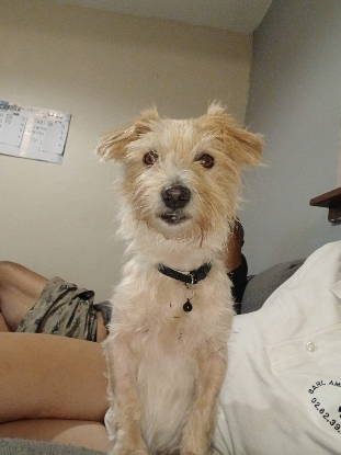 Son histoire : Pearl a été trouvée en bordure d'un champ de canne, dans un triste état, une masse de poils collée contre sa peau, elle était en détresse et attendait qu'on lui vienne en aide. Elle a été abandonnée avec une autre petite chienne qui a été adopté par la famille de sa sauveuse.